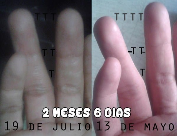 Me presento, soy un chico de 20 años que me lesioné por realizar una actividad deportiva, estaba jugando como portero me tire para atajar el balón, pero caí mal y todo mi peso se lo llevo mi dedo anular llegando a doblarse. Fui rápido a emergencias y me dijeron que era una lesión muy común para los que practican diversos deportes, con ayuda de una férula de rana, medicamentos anti - inflamatorios esto duraría 2 semanas a 3 semanas el solo iba a regresar a su lugar, eso fue hace 2 meses y 6 días, no he ido al doctor desde entonces por problemas económicos.