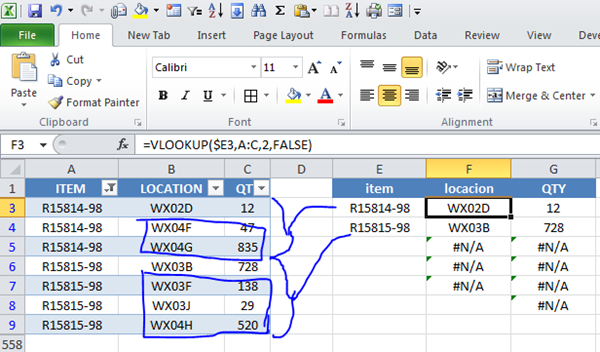 Ojala pueda ayudarme quiero hacer esto en excel pero el VLOOKUP no logra hacerlo.