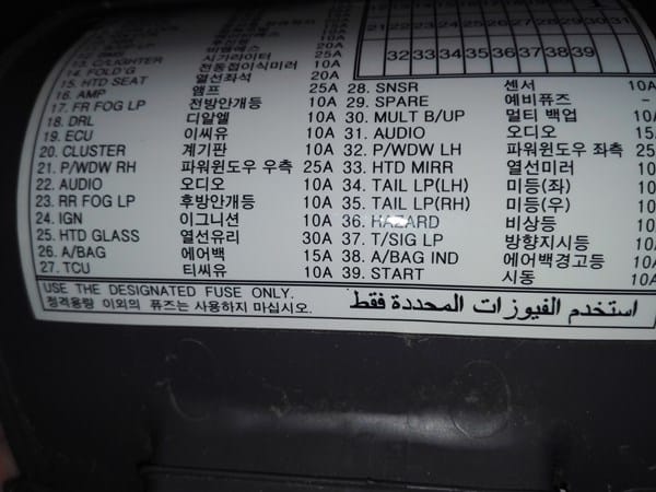 Mi problema es que tengo un kia rio 1.5 crdi (año 2007) y no funcionan las luces de posición traseras, he cambiado las bombillas y sigue igual, no se si se tratará de un fusible, y en ese caso de cual sería. Adjunto fotografía de los diagramas de fusibles. Muchas gracias de antemano.