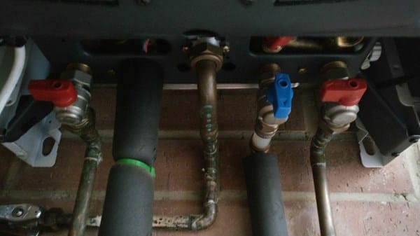 Sospecho de que la caldera tiene algo que ver, ya que, en lugar de las dos llaves que estoy acostumbrado a ver, una para llenado y otra para vaciado, tiene otra más, aunque aparentemente también vacia la caldera.