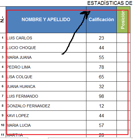 Una consulta quisiera ordenar mi notas de forma descendente en la cual ordene solo el nombre, la nota y la posición.