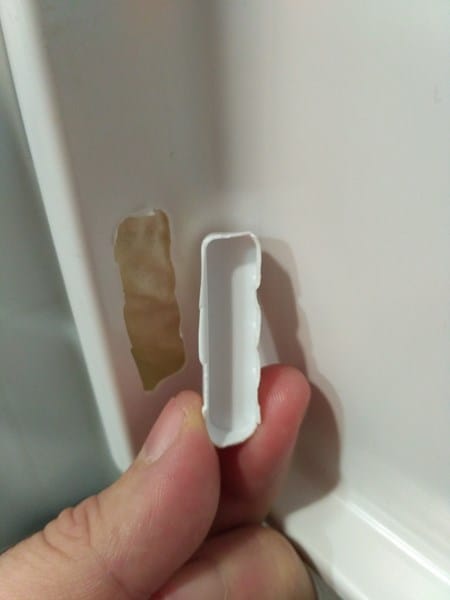 Lo que quiero hacer es arreglarla pero no sé muy bien cómo, podría poner un pegamento como loctite para pegar la piecita (he visto por Internet videos que le echan bicarbonato y se queda muy duro pero no me fio), aunque creo que eso no bastará para sujetar el botellero que necesita aguantar bastante peso (botellas, leche, etc.) tiene un agujero en el que podría rellenar de silicona, el pegamento no mas clavos, o incluso un tornillo aunque ésta última solución me parece extrema ya que podría dañar el aislante, ¿no?.