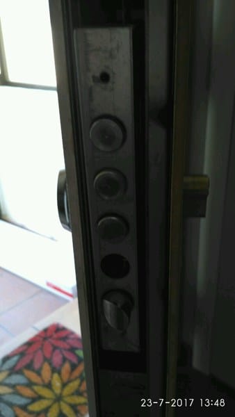 Cambio bombín puerta acorazada. No tiene tornillo de sujeccion del canto habitual, sino tornillos allen en la cerradura