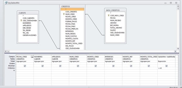 Necesito ayuda con respecto a un filtro que ya funciona en un formulario relacionado con una tabla llamada "clientes" que tiene un subformulario que posee información de los créditos por fecha y el saldo mínimo, el resultado del filtro en el subformulario me lo da a través de una consulta, donde se involucran las tablas "créditos" y "mov_cred" el detalle es que al decirle que tome los saldos mínimos, en el caso de los registros de clientes y créditos que aunque cumplen la condición de fecha no posee registros en la tabla "mov_cred" por lo que no me lo muestra. En la consulta.