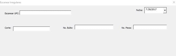 Donde dice Escanear UPC se escaneara un código de barras con cierta información la cual se desglosara en la parte de abajo (Corte, No. Bulto, No. Piezas) el código seria el siguiente: W216755003020