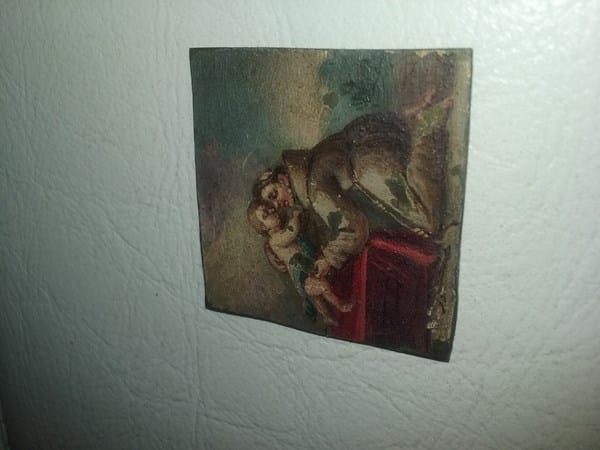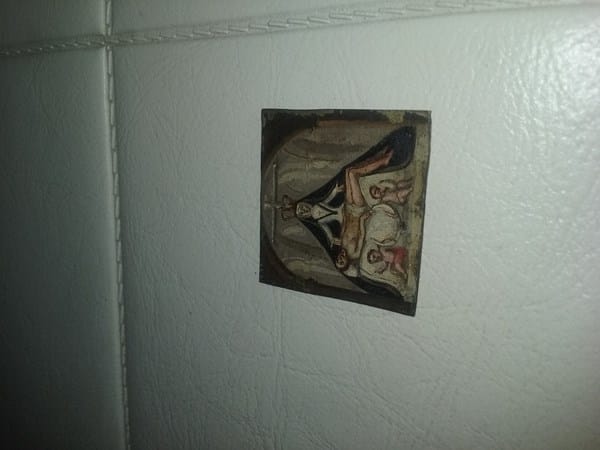 Pequeño cuadrado metálico pintado, no se que es