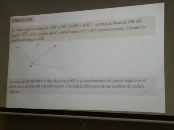 ---Se tienen ángulos contiguos AOB Y BOC (AOB < BOC) se traza la bisectriz OM del ángulo AOC, si los ángulos BOC Y BOM miden 60 y 20 respectivamente. Calcular la medida del ángulo AOB.