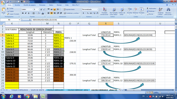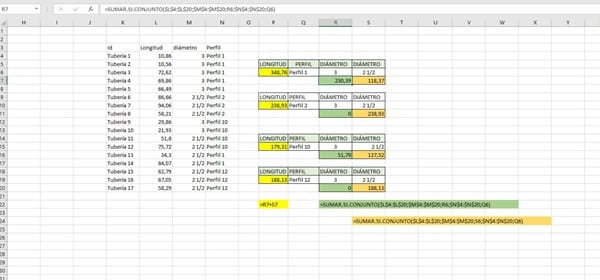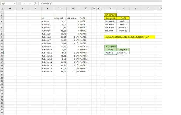 Tengan muy buenos días amigos expertos como siempre es un gusto saludarles y aprender de ustedes un poco. Estoy trabajando un archivo donde quiero conocer la longitudes por cada perfil pero resulta que utilizando la fórmula BDSUMA la longitud del perfil 1 es diferente y el problema es que ese resultado de 716.20 ml es la suma del perfil 1 más el peril 10 más el perfil 12. ¿Qué estaré haciendo mal?