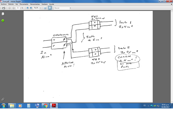 Tengo desde la bajada del medidor puesto cable de 10mm hacia tablero principal de la casa, luego dividido todo en dos fases una con cable de 2,5mm y otra con cable de 4mm ayer me ocurrió que el diferencial del tablero principal se quemo haciendo que se derrita uno de los terminales precisamente el de abajo el de salida hacia las térmicas pero nunca salto ninguna térmica ni el diferencial que era de 40a las térmicas son de 25a