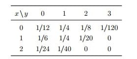 Sean (X, Y) un vector aleatorio discreto con función de probabilidad dada por la siguiente tabla.