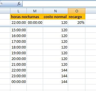 Tengo que conseguir sumar un recargo del 20 % sobre la hora común si la tarea transcurre entre las 22 a las 00