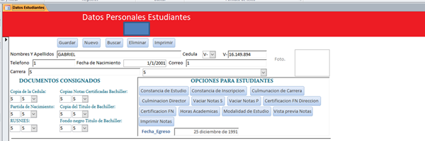 Como se ve en la imagen tengo los datos del estudiantes y se muestran de esa manera, ahora bien al darle clic sobre el botón "imprimir notas" me abre el siguiente informe: