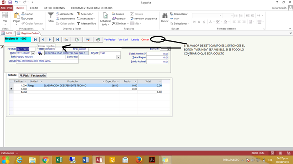 Tengo un formulario en access, en el que si el campo "tipo" es igual a 1el botón de nombre vernea se ponga visible y si no que SIGA OCULTO.