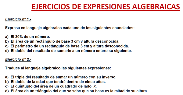 Como puedo expresar el lenguaje algebraico de los ejercicios mencionados.