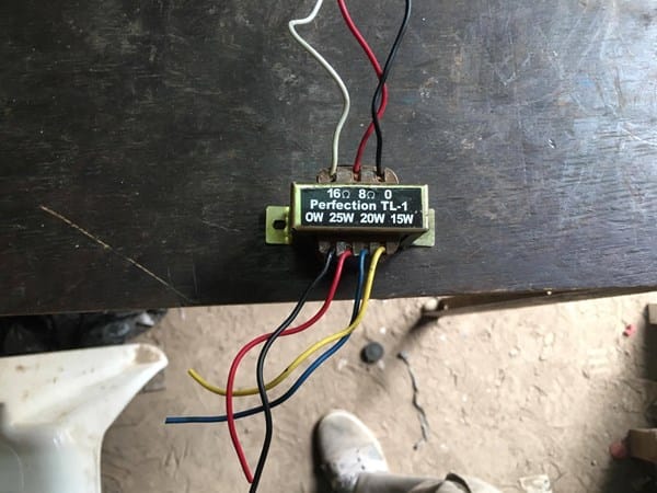 En este ejemplo, el primario tendría tantas espiras como tenga el secundario multiplicado por 0.7, por ejemplo si el secundario tiene 100 vueltas el primario tendrá 70, y deberías conectar las 70 vueltas al amplificador y las 100 vueltas al altavoz de 16 ohmios, de esta forma la impedancia que vería el amplificador será de 8 ohmios y por tanto se reproducirá en el altavoz la máxima potencia sonora sin que sufra ningún percance el amplificador.