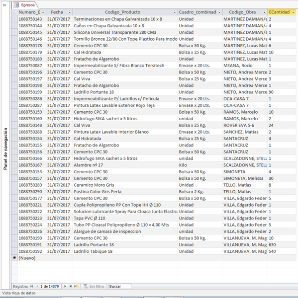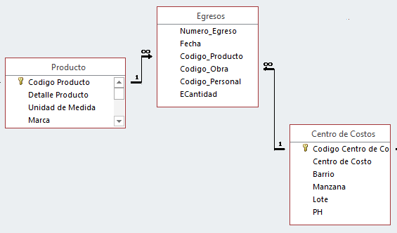 Tengo una BBDD en la cual poseo 3 tablas: 1) Productos 2) Centro de Costos 3)Egreso, tanto productos como Centro de Costos se relacionan uno a varios con egreso para registrar la carga de remitos a los Centros de Costos . La carga de remitos se hace mediante un formulario tipo hoja de datos, ya que es más practico debido a la cantidad de remitos que deben cargarse.