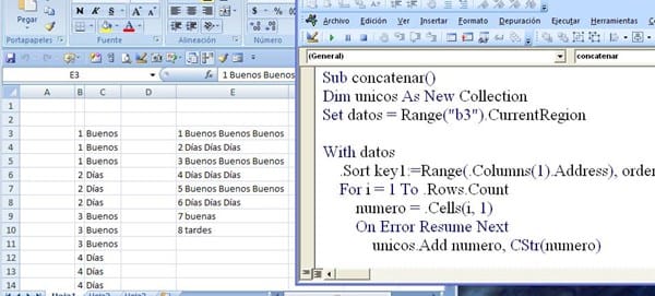 If k > 1 Then conca = conca & " " & duplicados.Cells(k, 2)