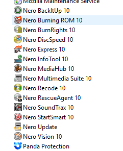 He probado el nero clean tool para borrarlos todos, pero no me reconoce la carpeta donde lo instalé, ha borrado "nero" (no sale una lista completa como la que muestro en el jpg arriba, y que sí sigue saliendo en el panel de control - desinstalador de programas.) . Sin embargo ahora sólo tengo la carpeta : program files x86 / nero / nero update (idiomas).