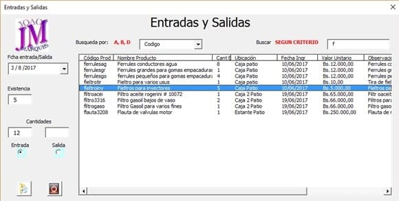 El pase de los datos a las hojas Entra o Sale, debe ingresar línea debajo de ultima línea ocupada. En columna B siempre habrá datos