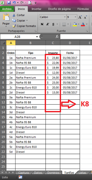 Necesitaría que en la celda M8 (opción 3) se multiplique I8*K8.
