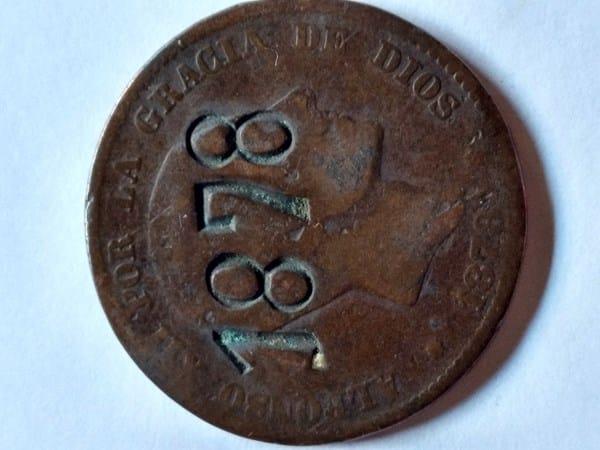 Tiene el año 1878 grabado en el centro de la moneda sobre la cara.