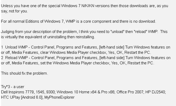 Accidentalmente borré las canciones en la Música del reproductor y quizás con desinstalar y volver a instalar la actualización se resuelve el problema, pero no se como se llama la actualización.Tengo windows 7 ultimate x64 bits . ¡ No ! Se resolvió desde activar y desactivar características de Windows .