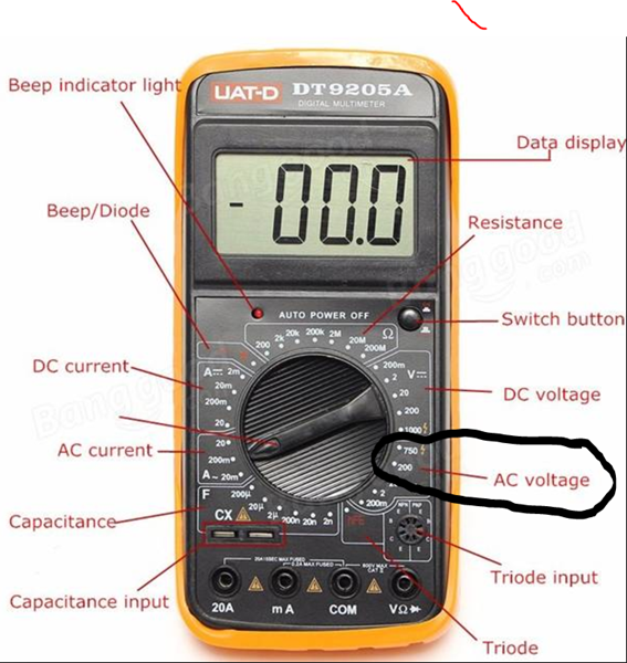 ¿Quisiera saber si puedo medir corriente con un multímetro digital básico? La línea es de 110v no se como describir el multimetro pues a lado derecho dice 1000v y alado derecho dice 750v.