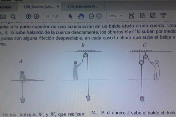 Fìsica: Trabajo de estos obreros al subir el balde( ver la imagen)..