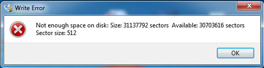 Error - file not found Error - device not found error - invalid handle value for volume error - can't get a lock on volume error - can't unmount volume error - invalid handle value for file error - invalid handle value for disk error - not enough space error - data is null error - error whilst writing error - no image file specified error - not able to get handle on image file error - not able to get handle on device error - not able to get handle on volume error - not able to lock volume error - not able to unlock volume error - not able to dismount volume error - not able to read data from handle error - not able to write data from handle error - not able to get number of sectors error - not able to get image file size error - not able to get device number, is something accessing the device? Error - not able to get device properties, ¿is something accessing the device?