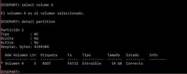 Si ejecutas el comando diskpart y luego seleccionas una unidad SD mediante el comando volume por ejemplo