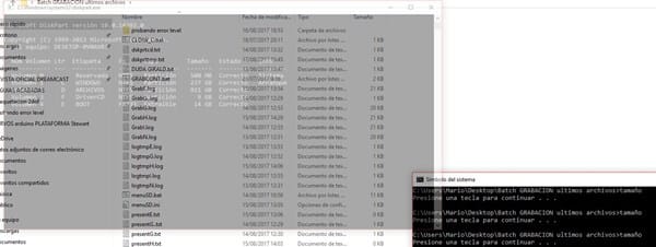 4- Ahora pongo "tamaño" sin más y lo que sucede es que se abre otra ventana y durante una milésima de segundo muestra algo que nunca alcanzo a ver, da igual los pause que ponga, he llegado a llenar el código de pause y lo que ocurre es que muestra la información durante una milésima y luego me aparece lo del pause "pulse una tecla para continuar" a si que para ver lo que ponía he tenido que recurrir a la pilleria y a estar 10 minutos ejecutando el puñetero .bat y pulsando la tecla imprimir pant, al final ha ganado mi paciencia y he conseguido pillar esta imagen de la ventana "fugandose"