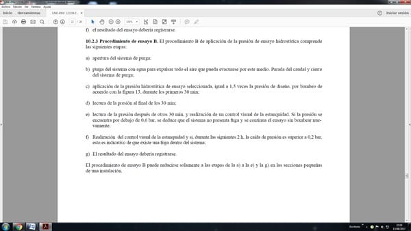 La prueba la tienes que realizar como mínimo a 6 bares.