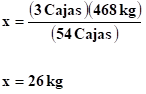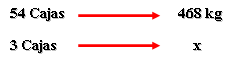54 cajas de tornillos pesan 468kg ¿Cuanto pesan 3 cajas?