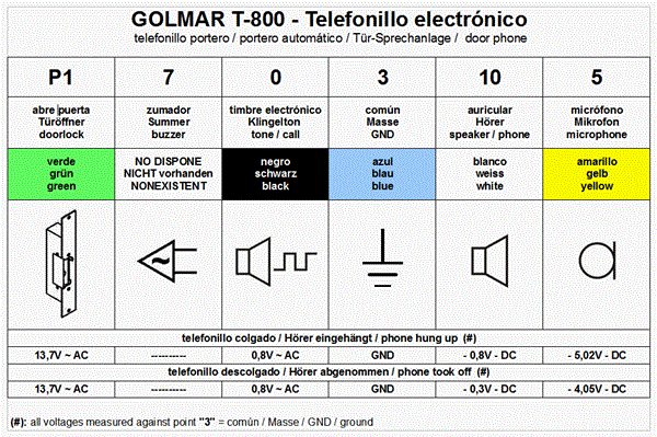 GOLMAR T-800 - Telefonillo portero - ¿Cableado extraño?