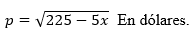Cantidad demandada= x cientos de unidades por semana, y precio unitario al mayoreo es: