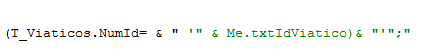 He realizado la siguiente consulta de igualación en un formulario después de actualizar el campo txtIdViatico:
