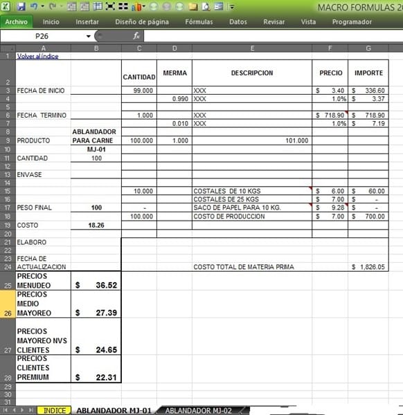 Generar un índice en un libro de excel