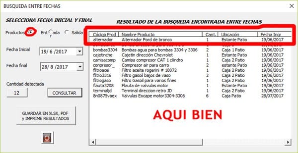 MsgBox "No existen registros", vbExclamation, "REVISAR FECHAS"