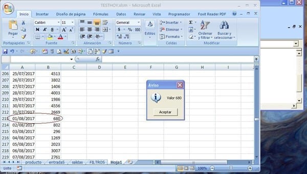 Tengo un historial que se va actualizando diario con una macro. De este historial necesito un dato que serial la resta de un numero tomado el primer día del mes con un numero tomado del día actual.