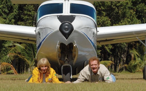 El nombre se debe a este señor que vemos junto a su hidroavion y a su esposa: Gerald Moss