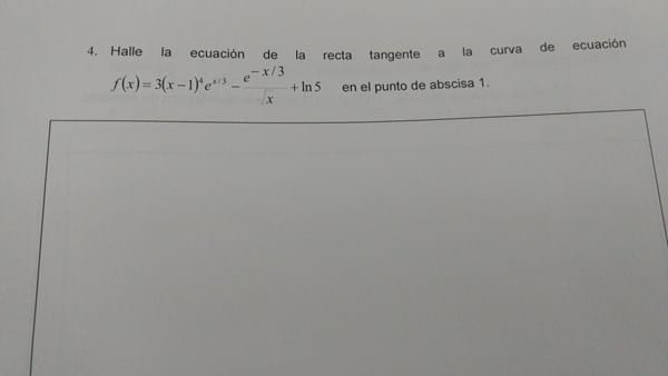 f ' (1) = (5/6)* e^(-1/3); que es nuestra pendiente de la recta, o m.