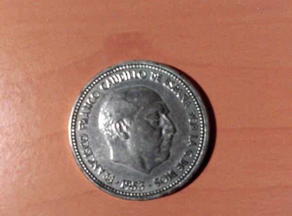 ¿La pregunta es que esta moneda es de color blanco como las 5 pts .me podéis decir algo sobre esto? También tengo de 1pta de 1975 *78 *79 *80 también blancas comolas de 50 céntimos pero no son de aluminio.