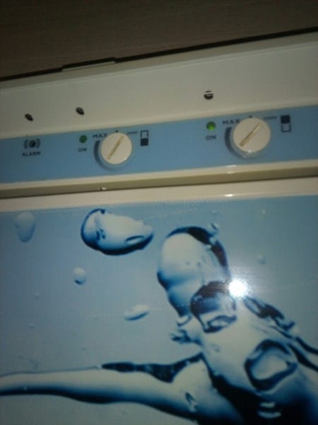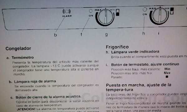 Están arriba del frigorífico tapado con una tapeta que se levanta los dos "botones"y hay en cada uno un frigorífico que esta dibujado con una puerta blanca y otra negra. Mi duda es que indica la puerta que correspinde al termostato la parte blanca o la parte negra. Estaré tonta perdida pero no lo se. Si supiera pondría la fotografía.