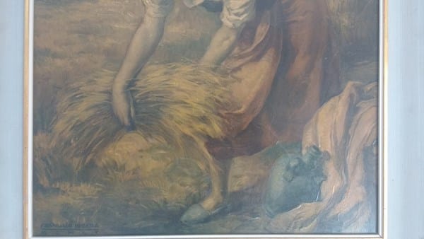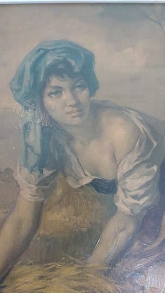 El cuadro se llama (Mujer con gavilla), esta firmado con su nombre y números romanos debajo, sale por internet como parte de sus obras pero tengo mis dudas... Tiene algunas imperfecciones en la pintura, 3 picaditos como la cabeza de un alfiler no se si se apreciara en las fotos... Si fuera verdadero, ¿Cuál es su valor aproximado? Y ¿Cómo puedo autentificarlo? Soy de Alicante capital, gracias.