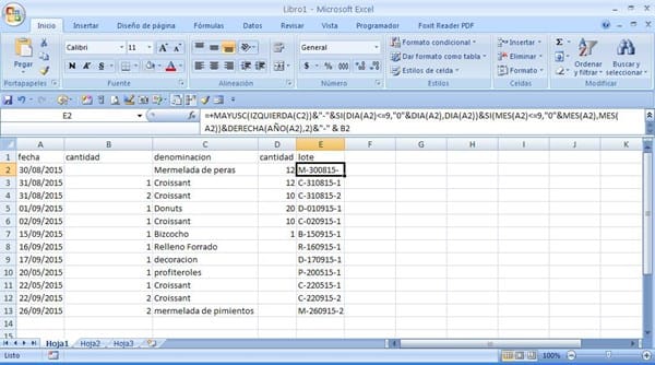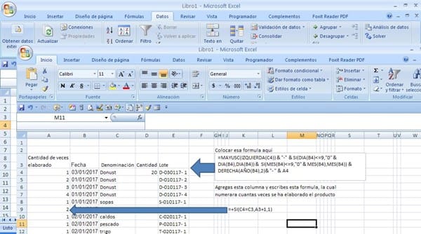 Mi pregunta es, ¿hay una fórmula que pueda poner para que solo ingresando el producto y la cantidad me salga el lote?. La fecha se actualiza sola. Mi problema es que cuando hago muchas cosas en el mismo día, a veces me confundo, por eso es por lo que quisiera que saliera solo.