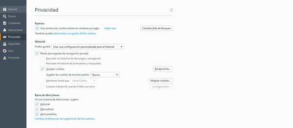No hablo de limpiar el historial, eso sí me deja pero el resto.. No