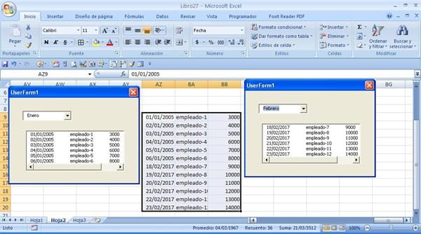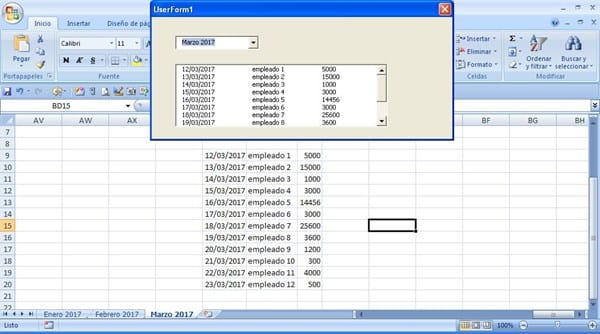 En el combobox se muestran las hojas que tiene el libro y son los meses del año.