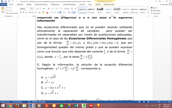 - Según la información, la solución de la ecuación diferencial homogénea: y^3 + x^3 dy/dx= xy^2 dy/dxcorresponde a: