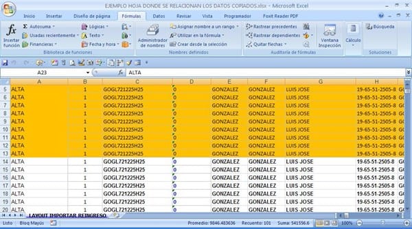 - Cada archivo tiene dos hojas una se llama ALTA GENERAL de la cual no se extrae nada la otra hoja se llama layout1 de la cual si se extrae o se copia la 4ª fila y se pega en un libro nuevo relacionando las filas extraídas o copiadas.