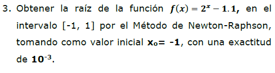 Obtener la raíz de la función?(?) =? −?.?, en elintervalo [-1, 1] por el Método de Newton-Raphson, tomando como valo
